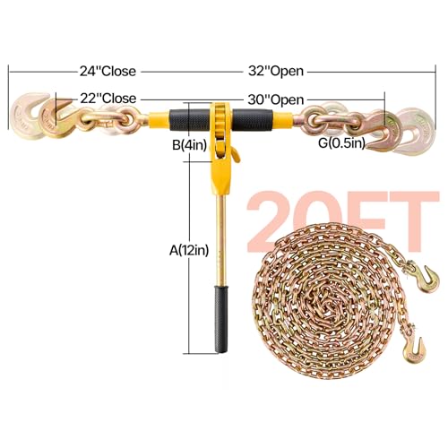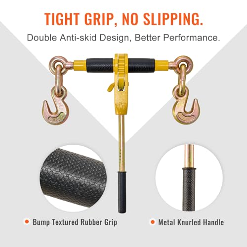 VEVOR Zurrkette mit Spanner, 2er-Set, Ratschenspanner, Ratschenkettenbinder, 0,8-0,9 cm, Kettenspanner Tragkraft 3220 kg, Rutschfester Griff, für Ladungssicherung, Transport, Tieflader-LKW-Anhänger