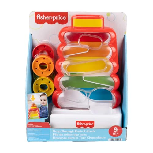 Fisher-Price Rutschspaß Farbring Pyramide, entwicklungsförderndes Aktivitätsspielzeug für Babys und Kleinkinder, 5 Münzen
