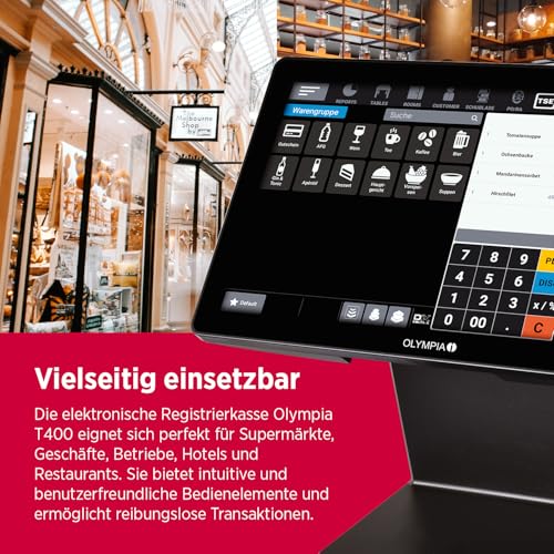 Olympia T400 | Kassensystem für Gastronomie & Einzelhandel | Touchscreen Kasse mit Android 11 & USB-TSE | Registrierkasse mit Kundenanzeige & Cloudoption | Komplettsystem für kleine Unternehmen