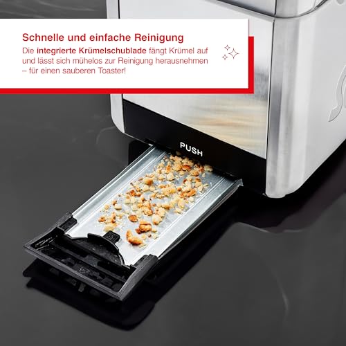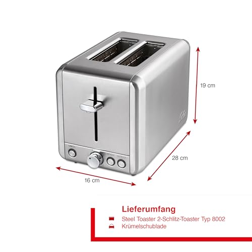 Solis Edelstahl-Toaster mit 2 extra großen Schlitzen, Krümelschublade, 925 Watt, Toaster Steel (Typ 8002), Silber