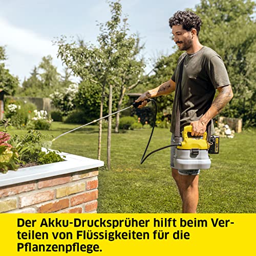 Kärcher 18 V Akku-Drucksprüher PSU 4-18, Druck: max. 3 bar, Fördermenge: 30 l/h, Schlauchlänge: 1,2 m, Behälter: 4 l, Teleskoplanze: 45-75 cm, verwendbar 18-V-Akku, ohne Akku