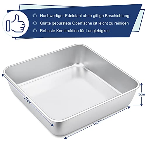 Joyfair Quadratische Kuchenform, Edelstahl Brownie Eckige Backform Auflaufform 2er-Set, 21 x 21 x 5 cm, ideal für Kuchen/Brownie/Lasagne, Gesund & Ungiftig, Spülmaschinenfest