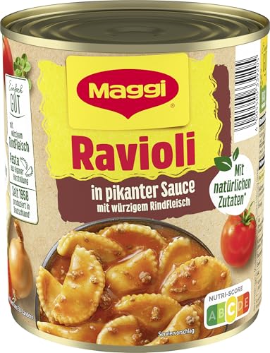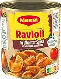 MAGGI Ravioli in pikanter Sauce, Teigtaschen mit Fleisch-Füllung, leckeres Fertiggericht für Topf & Mikrowelle, 6er Pack (6 x 800g)
