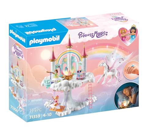 PLAYMOBIL Princess Magic 71359 Himmlisches Regenbogen-Schloss, magische Welt mit leuchtender Regenbogenblume, Schmetterlingsring, Pegas und Prinzessinnen, ab 4 Jahren