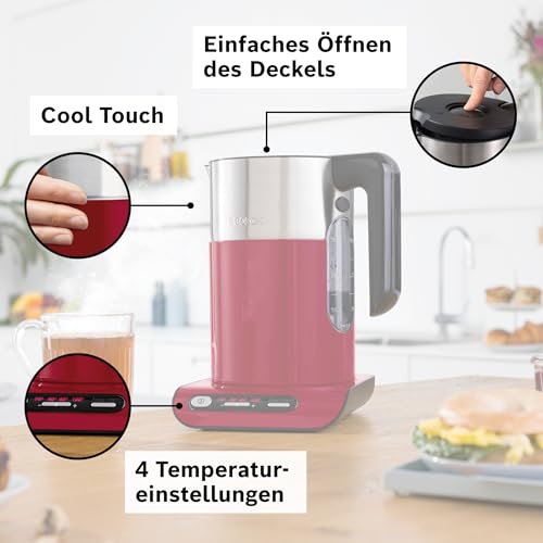 Bosch Wasserkocher Styline TWK8614P, Abschaltautomatik, Überhitzungsschutz, Temperaturwahl, Warmhaltefunktion, 1,5 L, 2400 W, rot