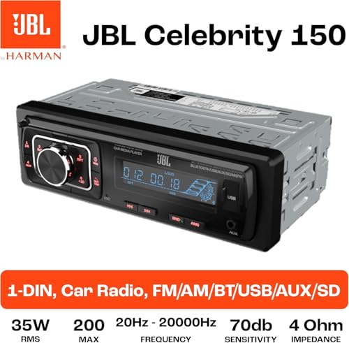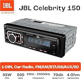 JBL Autoradio Bluetooth Celebrity 150 von Harman Kardon, 1 DIN 4 x 50W AM/FM Radio Mit Bluetooth Streaming und Freisprecheinrichtung für Auto mit Abnehmbares Display, USB, SD, AUX und 2 RCA Ausgänge
