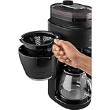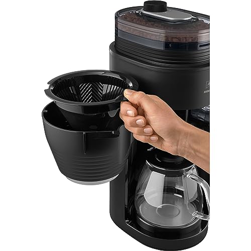 Melitta AromaFresh Pro X – Filterkaffeemaschine mit integriertem Mahlwerk, entnehmbarem Wassertank, Glaskanne und Timer-Funktion, für bis zu 10 Tassen Kaffee, in Schwarz/silber