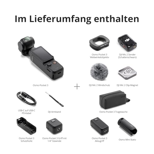 DJI Osmo Pocket 3 Kreativ Combo, vlog kamera 4K mit 1-Zoll-CMOS und 4K/120 fps Video, 3-Achsen-Stabilisierung, digital kamera, schnelles Scharfstellen, inkl. Mikrofon für klaren Ton, YouTube