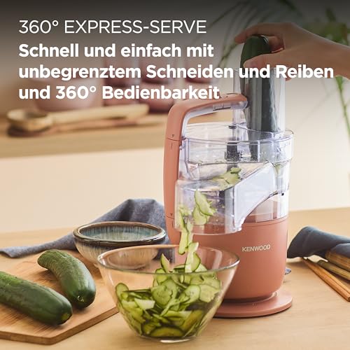 Kenwood MultiPro Go FDP22.130RD, Küchenmaschine, Hacken, Schneiden, Reiben, Reduzieren in Püree und Kneten, 360° Express Serve, Schüssel 1,3 l, Knetklingen, 4 mm Scheibe, 650 W, Tonrot
