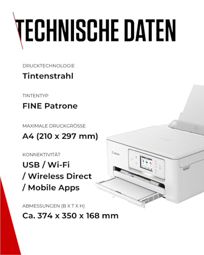 Canon PIXMA TS7650i Multifunktionsdrucker 3in1 (Tintenstrahl,Drucken, Kopieren, Scannen, A4, 6,7 cm Touch LCD, WLAN, Duplexdruck, 2 Papierzuführungen, kompatibel mit Pixma Print Plan ABO) Weiß