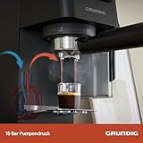 GRUNDIG KSM 5330 Siebträgermaschine mit integriertem Milchbehälter, 1628 W Leistung, 15 bar Pumpendruck, Zweifachdüse, farbiges Touch-Display, BrewSense, CreamyPro, Dark Inox/Schwarz