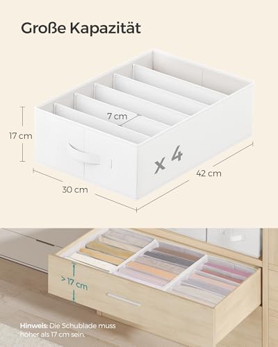 SONGMICS Kleiderschrank-Organizer 4er Set, Aufbewahrungsbox 6 Fächer, Schubladen-Ordnungssystem, Ordnungsboxen faltbar, 42 x 30 x 17 cm, für Hosen, Kleidung, wolkenweiß RUS009W04