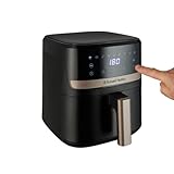 Russell Hobbs HEIßLUFTFRITTEUSE, Schwarz, Kunststoff, 4,3 L, 26x28x34.5 cm, Grüner Punkt, antihaftbeschichteter Innenbehälter, Temperaturanzeige, Betriebsanzeige, Timer, Einsatz/Korb spülmaschinengeeignet, Kontrollleuchte, Display, Touchscreen, Küchengeräte, Heißluftfritteusen