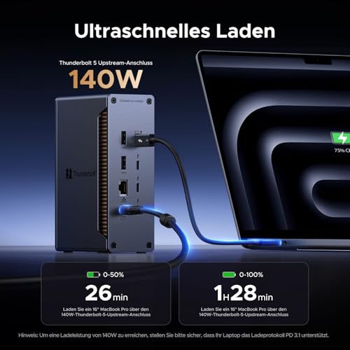 UGREEN Revodok Max 2131 Thunderbolt 5 Dock 120Gbps mit 3*TBT5 (Single 8K@60Hz & Dual 6K@60Hz max.), Docking Station 140W Aufladen für Laptop, 2.5Gbps Ethernet, SD 4.0, 3.5mm Aux