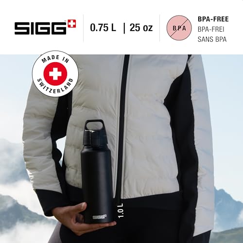 SIGG - Alu Trinkflasche - WMB Pathfinder Black - ClimatePartner Zertifiziert - Für Kohlensäurehaltige Getränke Geeignet - Auslaufsicher - Federleicht - BPA-frei - Outdoor - Schwarz - 0.75 L