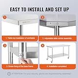 VEVOR Edelstahl-Arbeitstisch Kommerzieller Vorbereitungstisch 762x1524mm Hotel