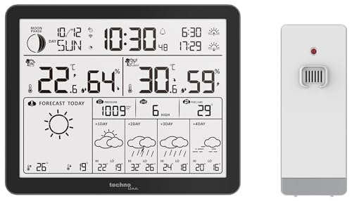 Technoline WD3000 - Wetterstation mit 4 Tage Wettervorhersage, Inklusive Außensender, Daten auf der Station und auf dem Handy (App direct weather)