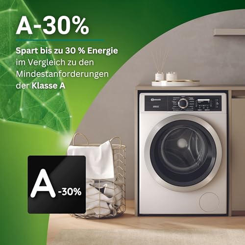 Bauknecht B8 09AD SILENCE DE Waschmaschine Frontlader/Gentle-Power/Energieeffizienklasse A-30 Prozent/Besonders leise Waschmaschine/AutoDose/Steam-Hygiene, Refresh,-Finish/Volle Ladung 45 Min.