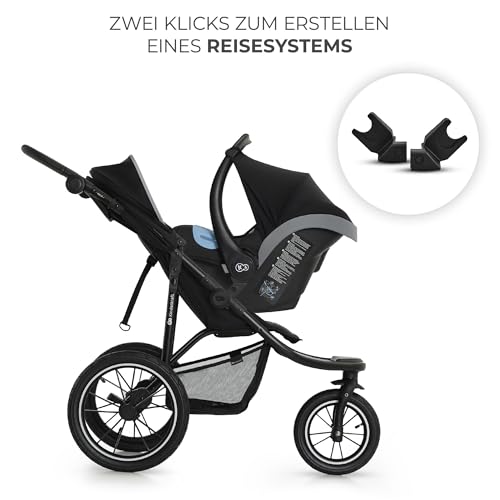 Kinderkraft HELSI 2 Buggy bis 27 kg, Buggy ab geburt, Laufkinderwagen mit große Luftreifen, Liegefunktion, Verstellbarer Elterngriff, Zusammenklappen, Untersitzkorb, Schwarz