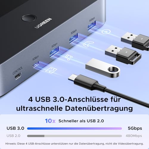 UGREEN HDMI KVM Switch 2 PC 2 Monitore 8K60Hz 4K240Hz Tastatur und Desktop-Controller Umschaltung 4 USB 3.0 Ports Kompatibel mit Windows/Linux/MacOS usw.