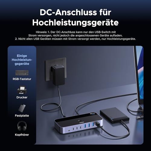 UGREEN 10Gbps USB Switch 2 In 7 Out USB C Umschalter mit Netzteil fĂĽr PC