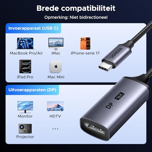 UGREEN USB C auf DisplayPort 2.1 Adapter 16K@60Hz 8K@120Hz 4K@240Hz Thunderbolt auf DP Kabel HDR Dolby kompatibel mit MacBook Pro/Air Mac mini iPad Pro/Air iPhone 17/16