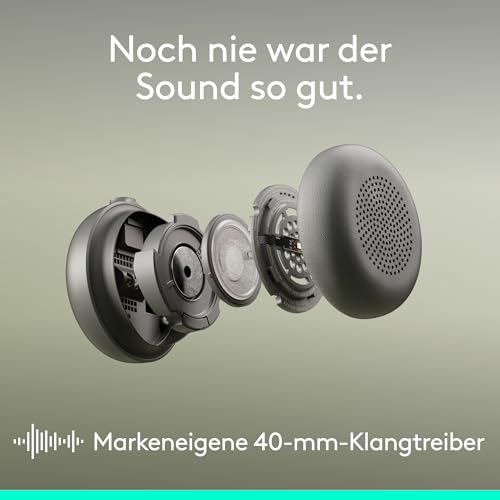 Logitech Zone Wireless 2 ES – kabelloses Headset mit Geräuschunterdrückung, adaptiver Hybrid-ANC, Bluetooth, Grauweiß