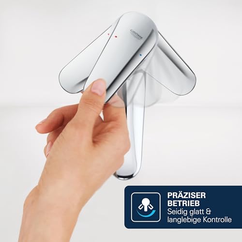 GROHE Dice, Waschtischarmatur, wassersparend (Wasserhahn für das Bad, Badarmatur mit Push-Open Ablauf, 15cm hoch, mit 3in1 Werkzeug, einfache Installation am Waschbecken), chrom, 1018570000