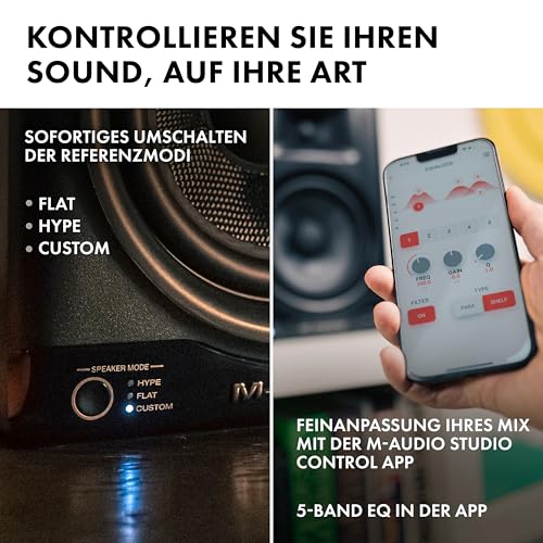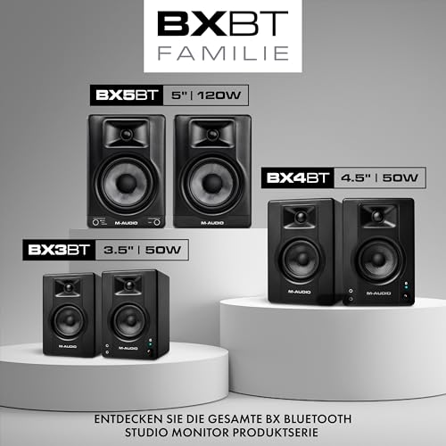 M-AUDIO BX5BT 5-Zoll Desktop Studio Monitor Lautsprecher Paar mit DSP, Bluetooth sowie App-Steuerung für Musikproduktion, Video-Editing, Content Creation und Podcasting