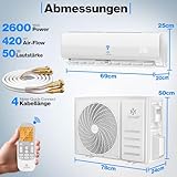 KESSER® Split Klimaanlage Set Quick Connect 9000 BTU 2,6 kW – WiFi & App Klimagerät mit Heizfunktion & Kühlmodus Wandklimaanlage, mit Kupferleitung Kältemittel R32 Inkl. Montagematerial