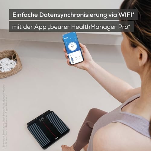 Beurer BF 990 Körperfettwaage mit Handsensoren, Digitale Personenwaage mit App-Anbindung via WIFI/Bluetooth, 25 Messwerte, Überkreuzmessung mit 8 Elektroden, Datenübertragung zu Apple Health & co.