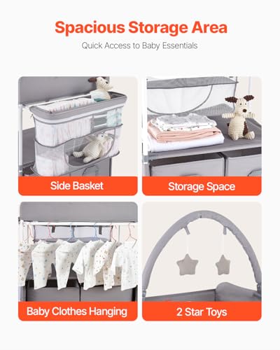 VEVOR Faltbare Wickelstation Wickeltisch mit Seitenkorb und Aufhängestange Grau