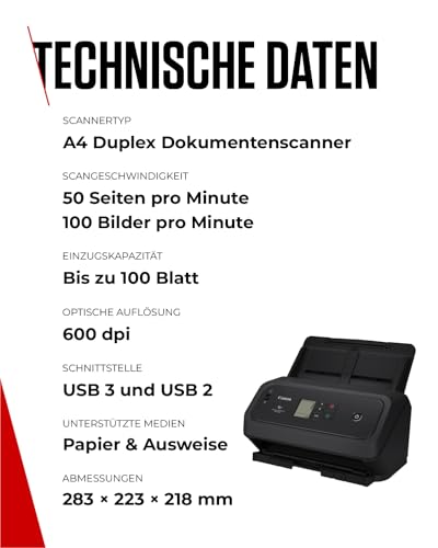 Canon imageFORMULA DR-C350 A4 Dokumentenscanner – Kompaktes Design & erweiterte Bildverarbeitung fürs Büro – 100-Blatt-Einzug – mit Canon CaptureOnTouch Pro