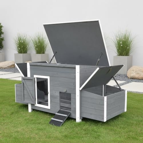 Mucola XXL Hühnerstall aus Holz für 6–8 Hühner – wetterfestes Hühnerhaus mit 2 Nestboxen, 4 Nistplätzen, Reinigungsschublade – Geflügelstall Outdoor Grau/Weiß