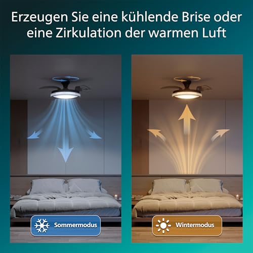 Philips Bliss Deckenventilator mit LED-Licht und Einziehbaren Flügeln, 3 Flügel, 106 cm Flügelspannweite, 4.500 Lumen, Einstellb. Licht (3.000 K bis 6.500 K), Dimmbar bis 5%, Inkl. Fernbed., Schwarz