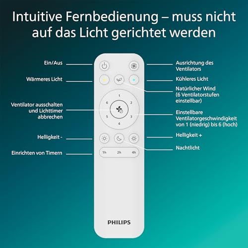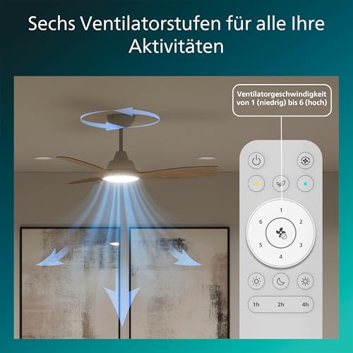 Philips LED Olas Deckenventilator 30 W mit Fernbedienung, Dimmbar