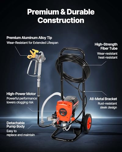 VEVOR Airless-Farbspritzgerät Sprühgerät 900 W 3300 psi, 1,78 L/min Farbsprühsystem mit Reinigungsbürste & Schlauch & Verlängerungsstange & Düsen, Farbsprühgerät für Wohnungen, Gebäude (Auf Rädern)