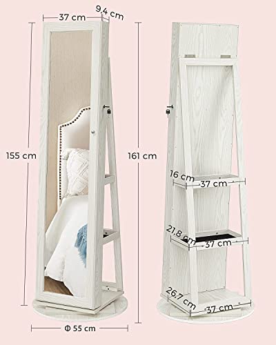 SONGMICS Schmuckschrank, Standspiegel, Spiegelschrank, mit Ganzkörperspiegel, um 360° drehbar, Schmuckaufbewahrung, abschließbar, mit Schlüsseln, Geschenkidee, weiß mit Grauer Holzmaserung JBC62W