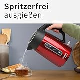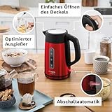 Bosch kabelloser Wasserkocher DesignLine TWK4P434, Ausgießen ohne Spritzer, Tassenanzeige, Wasserstandsanzeige beidseitig, Überhitzungsschutz, 1,7 L, 2400 W, rot