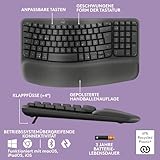 Logitech Wave Keys kabellose ergonomische Tastatur, gepolsterte Handballenauflage, Komfortables natürliches Tippen, Easy-Switch, Bluetooth, Logi Bolt, Multi-OS, Windows/Mac, Deutsches QWERTZ, Graphit
