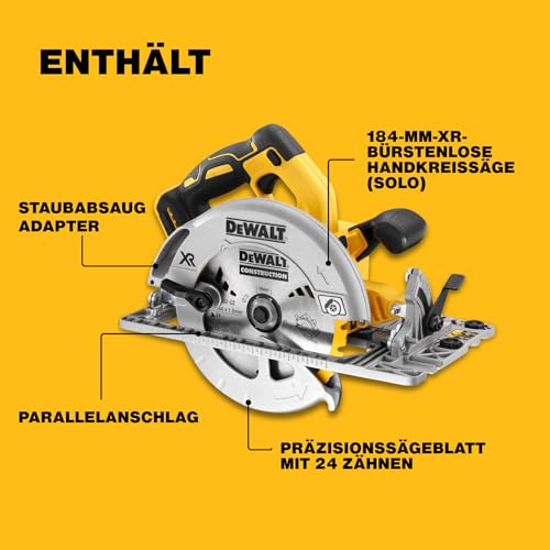 DEWALT XR 18V Bürstenloser 184mm Handkreissäge, Führungsschienen-kompatibel, 58mm Schnitttiefe, Werkzeuglose Einstellung, TSTAK Koffer, LED, AirLock Staubabsaugung, Solo-Gerät – DCS572NT-XJ