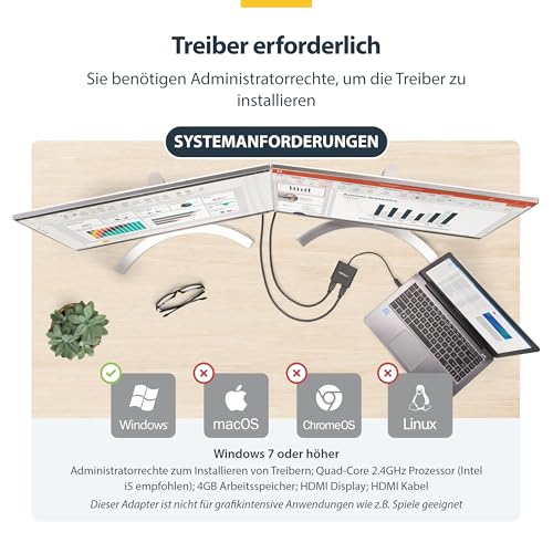 StarTech.com USB 3.0 auf Dual HDMI Adapter, USB 2x HDMI Monitor Konverter für Windows(macOS/ChromeOS/Linux nicht unterstützt)