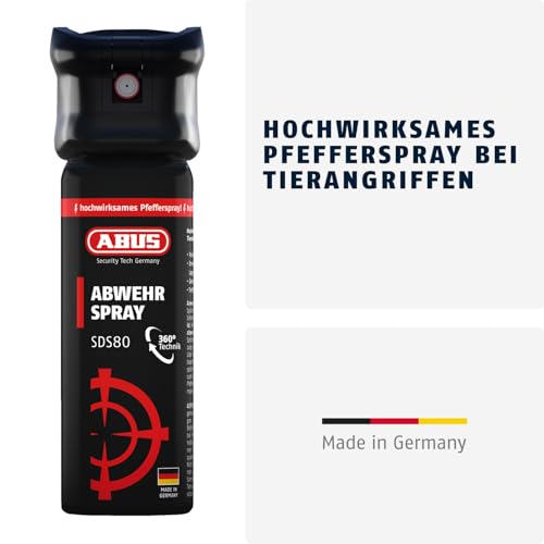 ABUS Abwehrspray SDS80 zur Tierabwehr + Trainingsspray – Pfefferspray zur Selbstverteidigung bei Tierangriffen – mit Jet-Sprühstrahl für bis zu 5 Meter Reichweite – funktioniert auch kopfüber