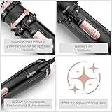 BaByliss Dry, Straighten and Style - Rotierende Warmluftbürste, 1000W Ionen Rundbürstenföhn mit 4 Aufsätzen zum Föhnen, Glätten, Volumen kreieren, Schwarz, AS200E