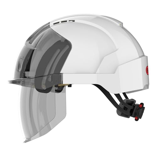 JSP EVO® VISTAshield Schutzhelm – Belüftet – Integriertes Vollvisier (Smoke) – Drehradverschluss – EN397 & EN166 Zertifiziert – Weiß – (Modell: AMD170-005-F00)