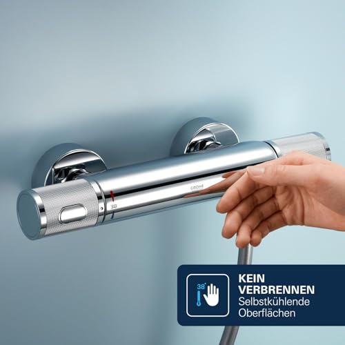 GROHE Precision Feel, Duscharmatur, wassersparend (Thermostat hält Temperatur konstant, Mischbatterie mit kühler Oberfläche, Sicherheitssperre 38°C, Anti-Rutsch Griffe, mit 3in1 Tool), chrom, 34790000