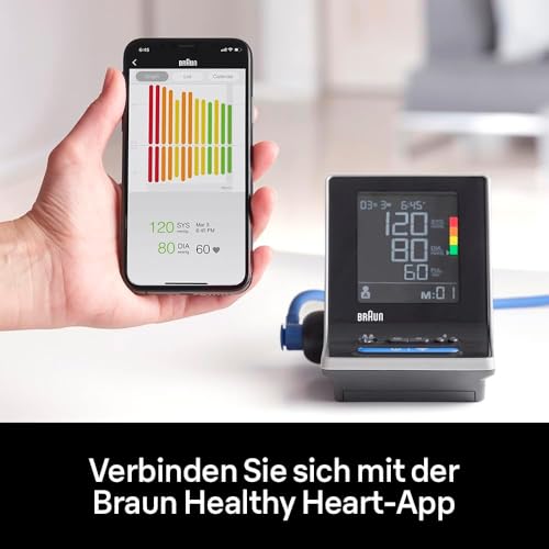 Intelligentes Braun ExactFit 5 Connect Oberarm-Blutdruckmessgerät | Braun Healthy Heart App | Klinisch nachgewiesene Präzision | Farbcodierte Anzeige | 2 Manschettengrößen | Für zu Hause | BUA6350