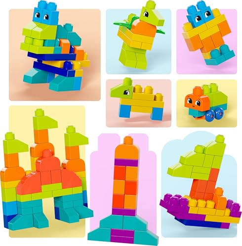 MEGA HHM96 - MEGA BLOKS Bausteinebeutel Deluxe, 150 große und farbenfrohe Bausteine mit einer Aufbewahrungstasche, Konstruktionsspielzeug, Spielzeug-Geschenkset für Kinder ab 1 Jahr