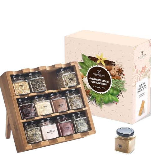 Tilz Gewürzset Holz Gewürzregal mit Gewürzen inklusive Freistehende Nachfüllung Kräuter-Gewürzmischung mit 12 Gewürzen zum Kochen Gewürzset Kleine Geschenke für Frauen
