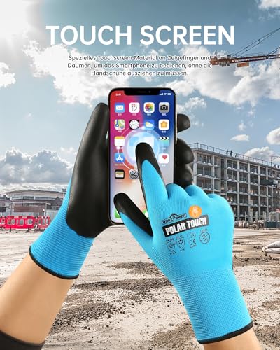 WORKPOWER Arbeitshandschuhe Herren Winter Polar Touch - Montagehandschuhe aus Nylon - Winter-Arbeitshandschuhe Männer mit PPU-Beschichtung - Forsthandschuhe mit Touchscreenfinger - blau/anthrazit